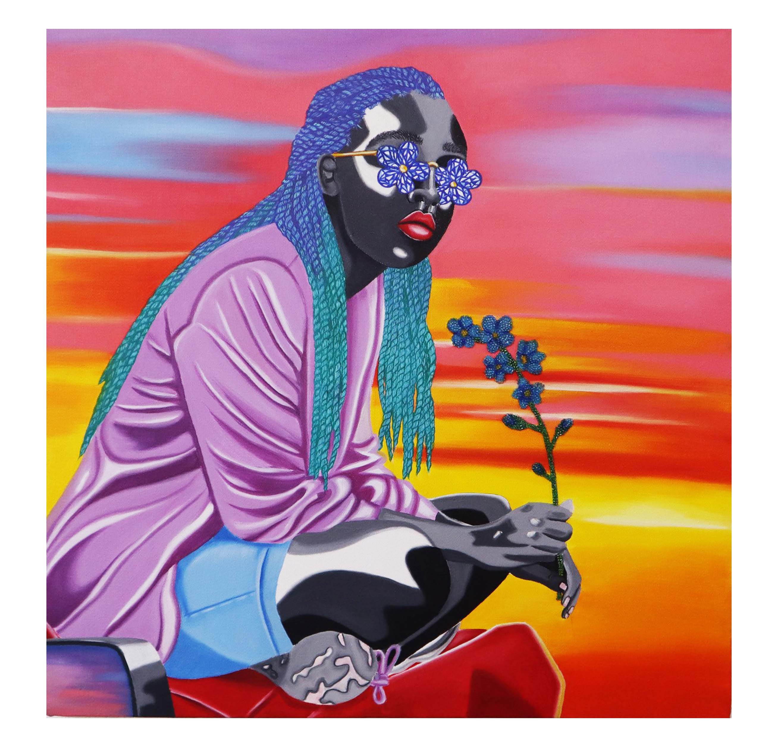 Acrylic, Oil and Beads on Canvas, Angela Wambui (Kenyan, born 1996)