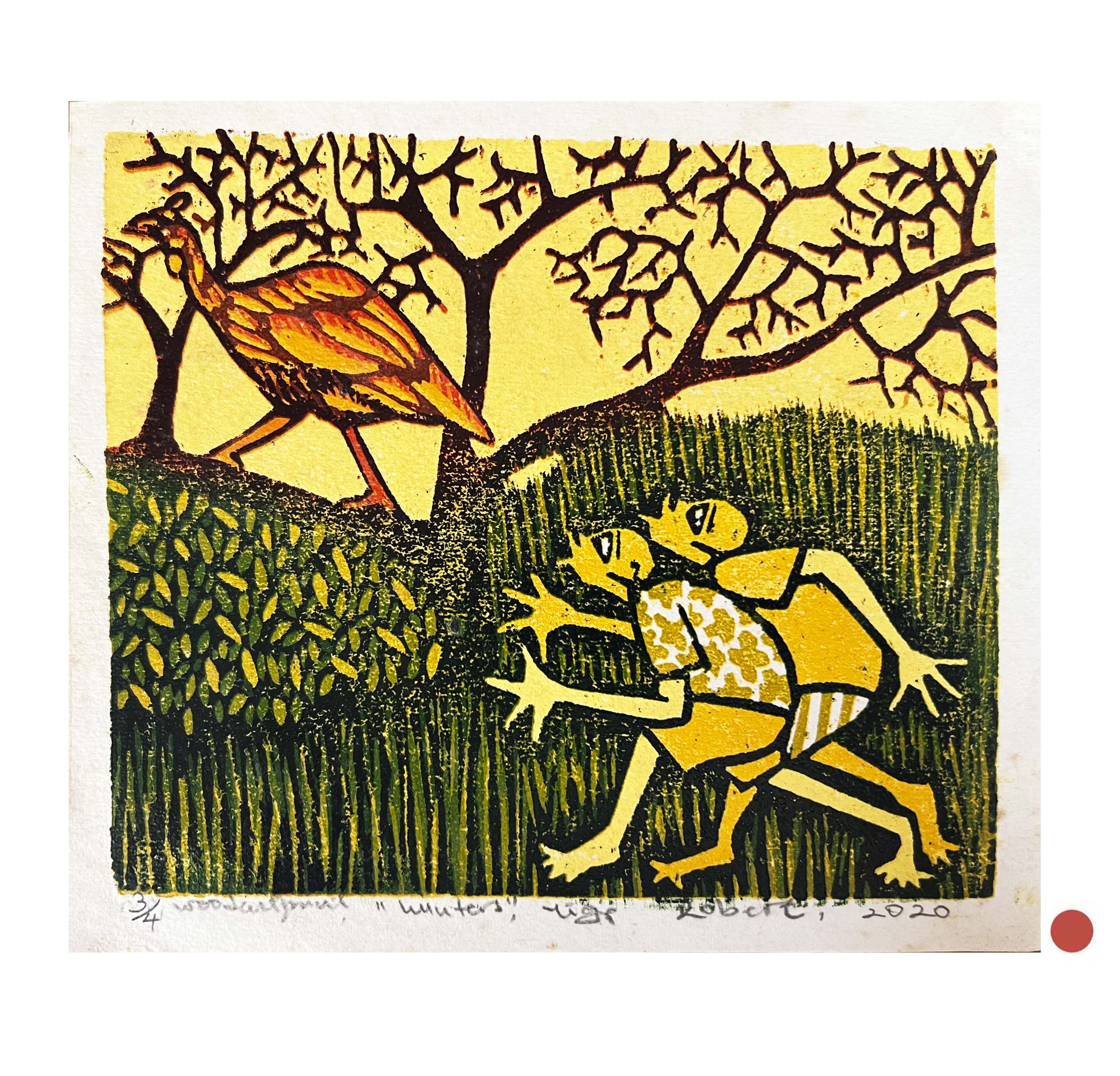 Woodcut print on paper, Edition 3/4, Yiga Robert (Ugandan, born 1986)
