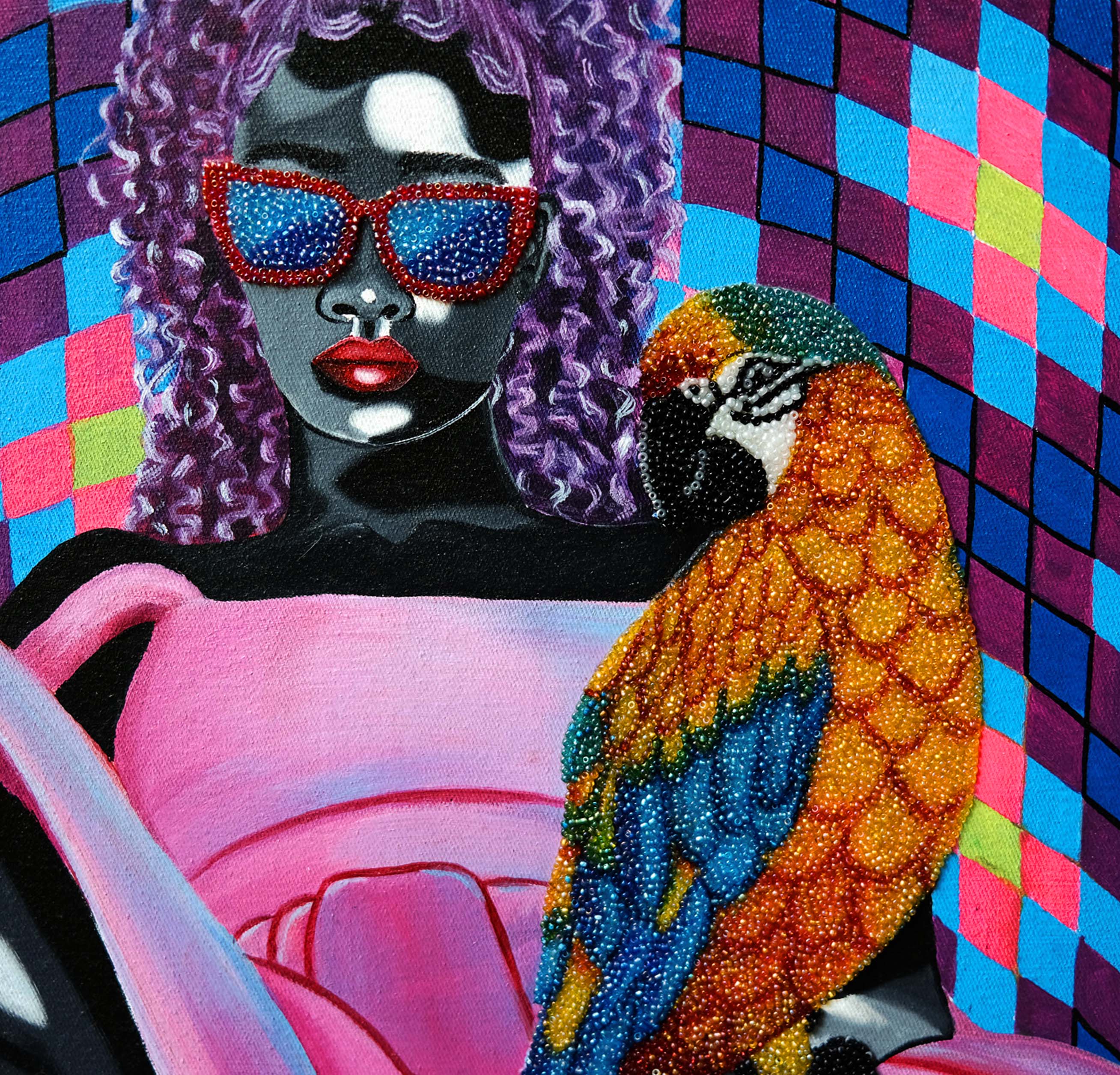 Acrylic, Oil and Beads on Canvas, Angela Wambui (Kenyan, born 1996)