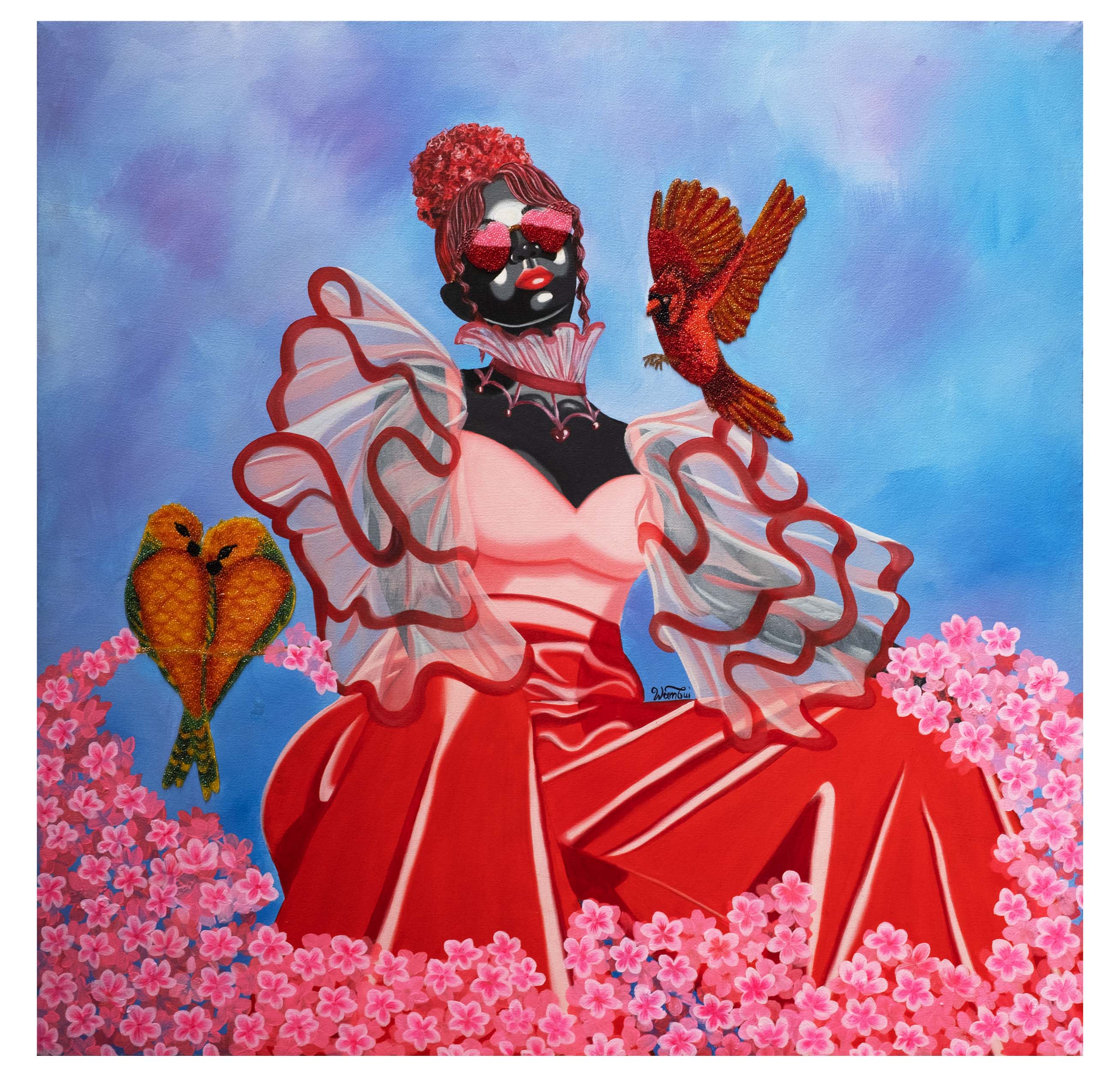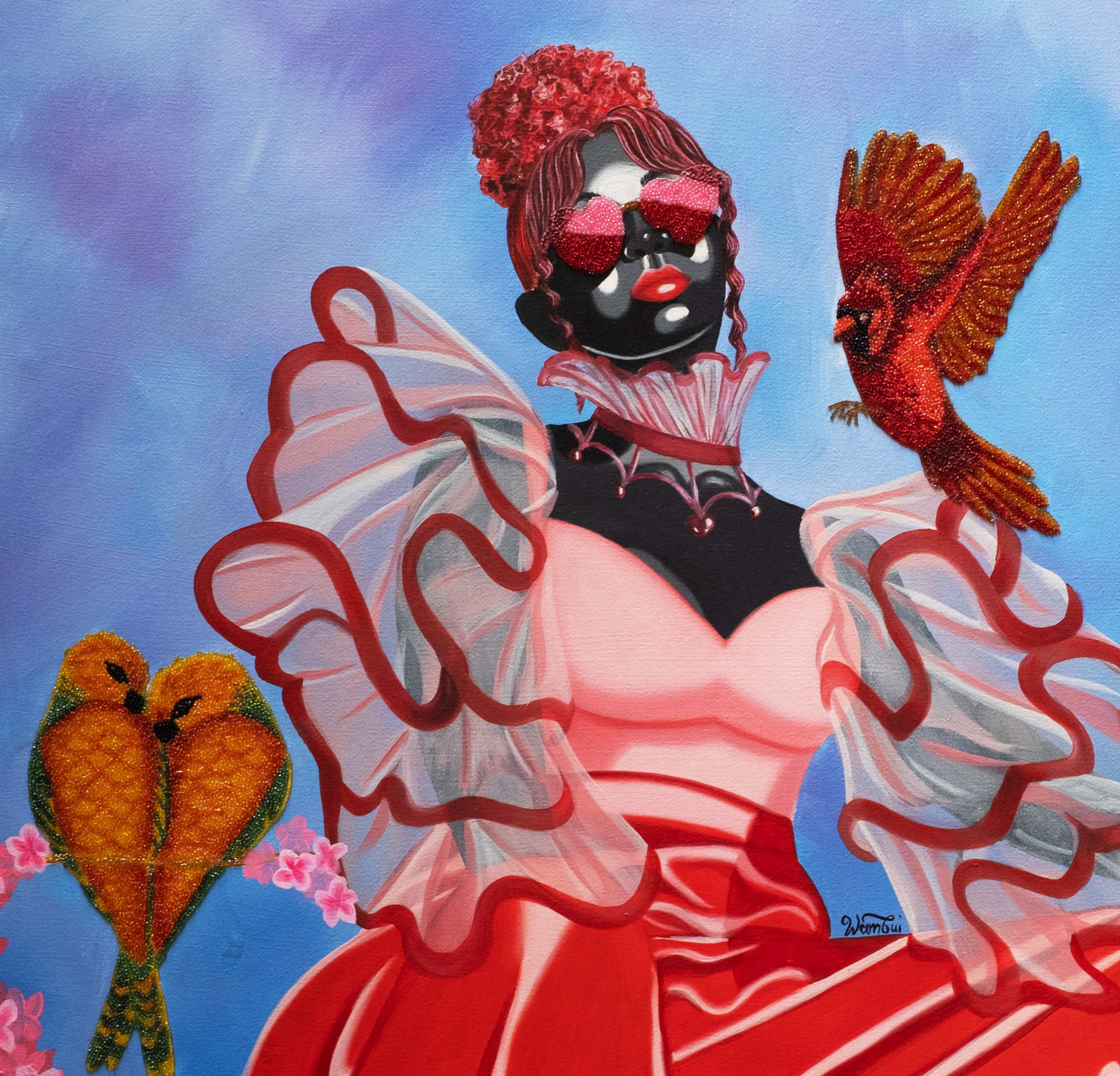 Acrylic, Oil and Beads on Canvas, Angela Wambui (Kenyan, born 1996)