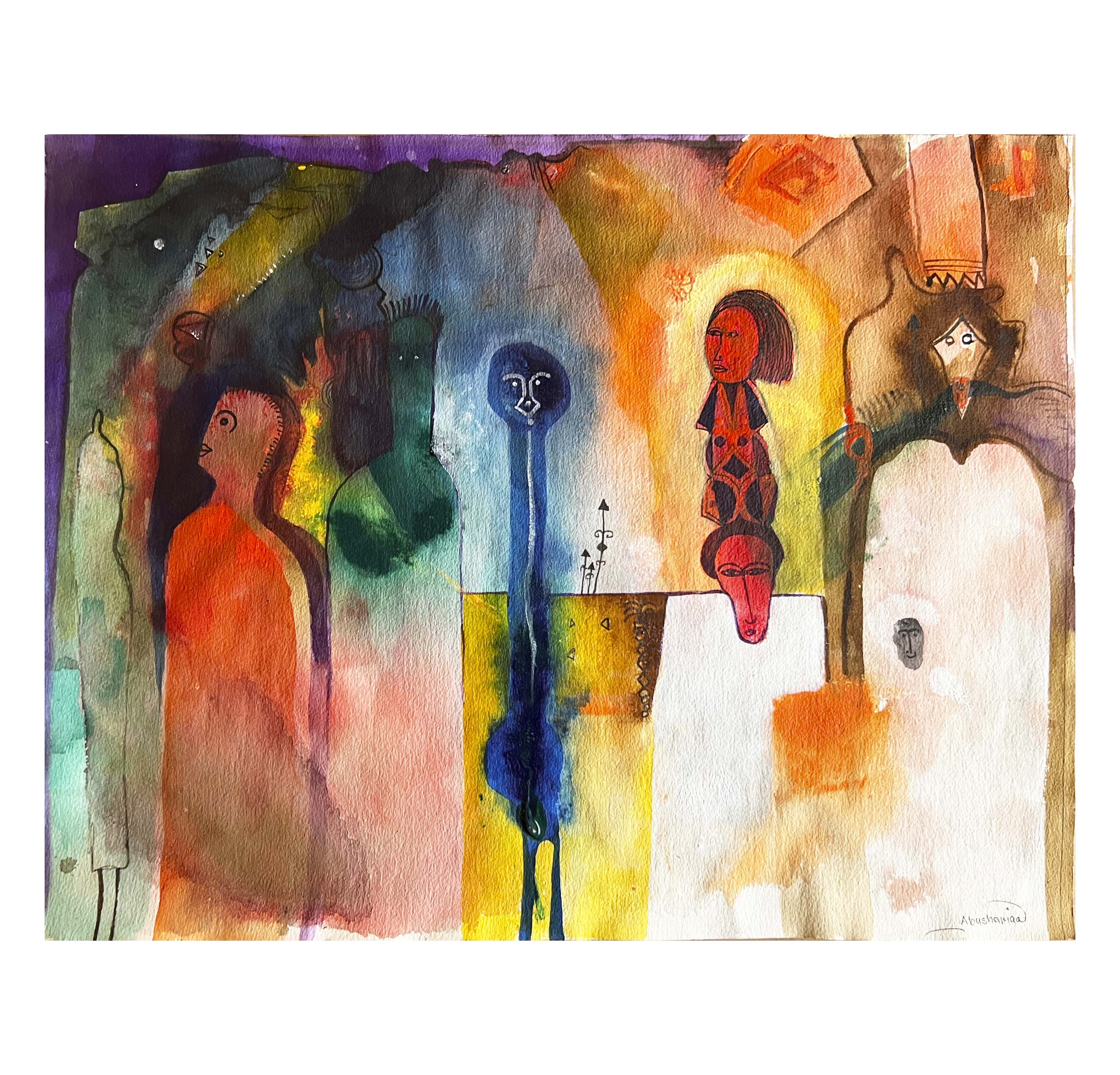 Mixed Media on Watercolour Paper, Ahmed Abushariaa (Sudanese, born 1966)